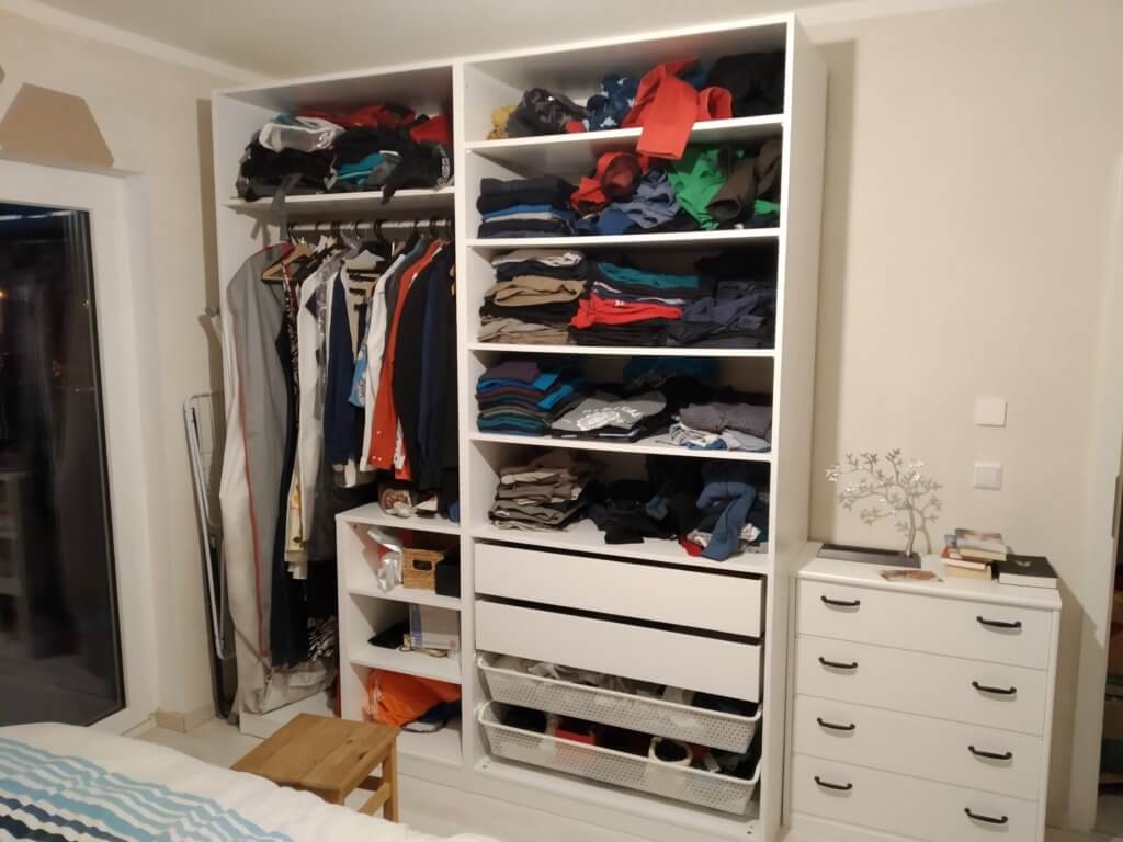 Am Samstag ging es dann los mit dem Aufbau des Kleiderschrankes im Schlafzimmer und der Gästecouch. Die Türen des Schranks sind noch nicht montiert, aber wir sind trotzdem sehr zufrieden mit dem Tagwerk. Und kurz vor Feierabend habe ich sogar noch ein bisschen Schuppen aufgeräumt … man kann wieder treten …