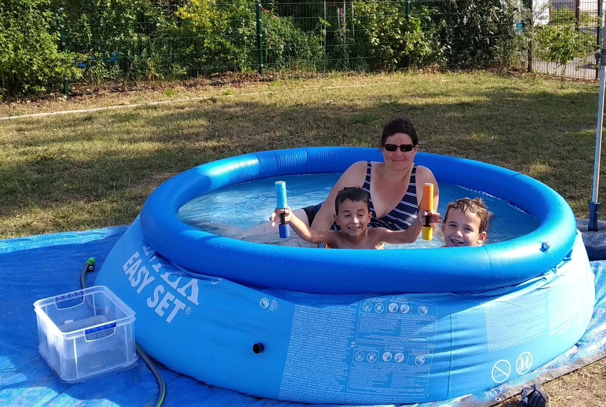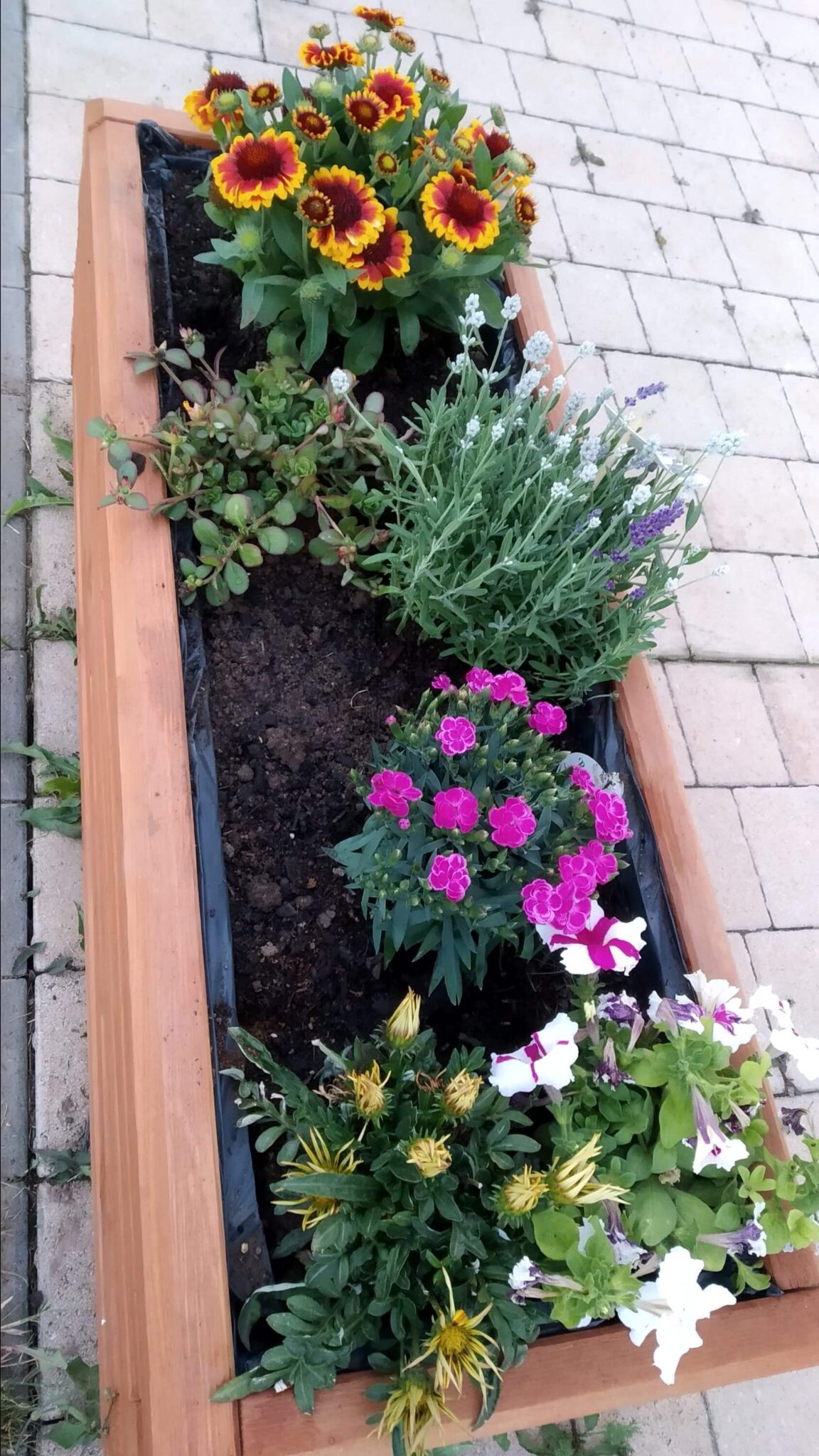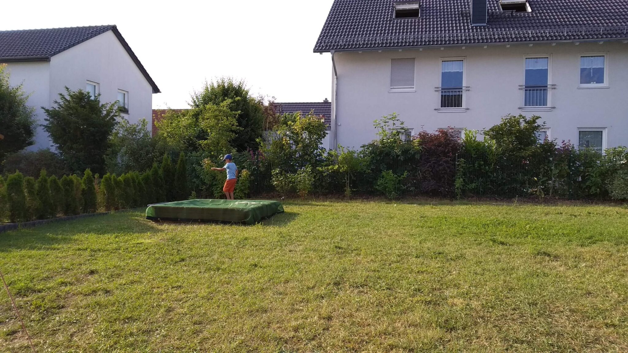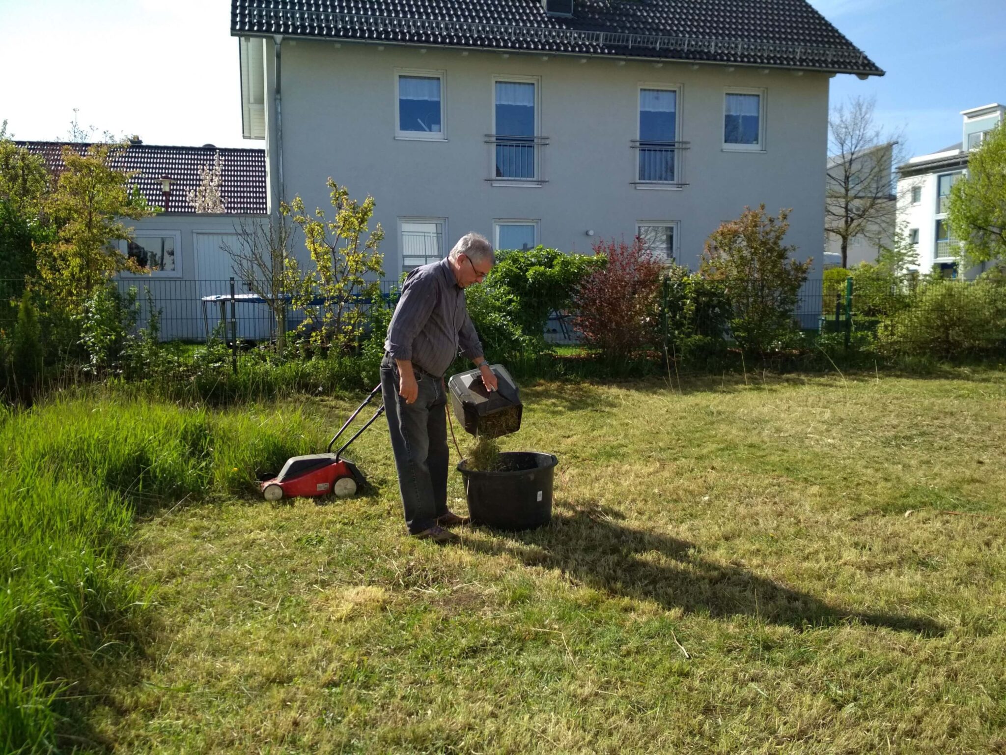 Die kleine Hitzepause habe ich genutzt, um etwas Rasen zu sähen. Nach Beseitigung des Erdhaufens und Abtransport von weiteren knapp 300kg Steinen grünt jetzt schon der frische Rasen. Mal sehen ob er die kommende Hitze am Wochenende übersteht. Werde ihn wohl mit einer Plane abschatten, damit die Erde feucht bleibt. Auch der letzte Pflanzkasten wurde nun endlich bepflanzt.