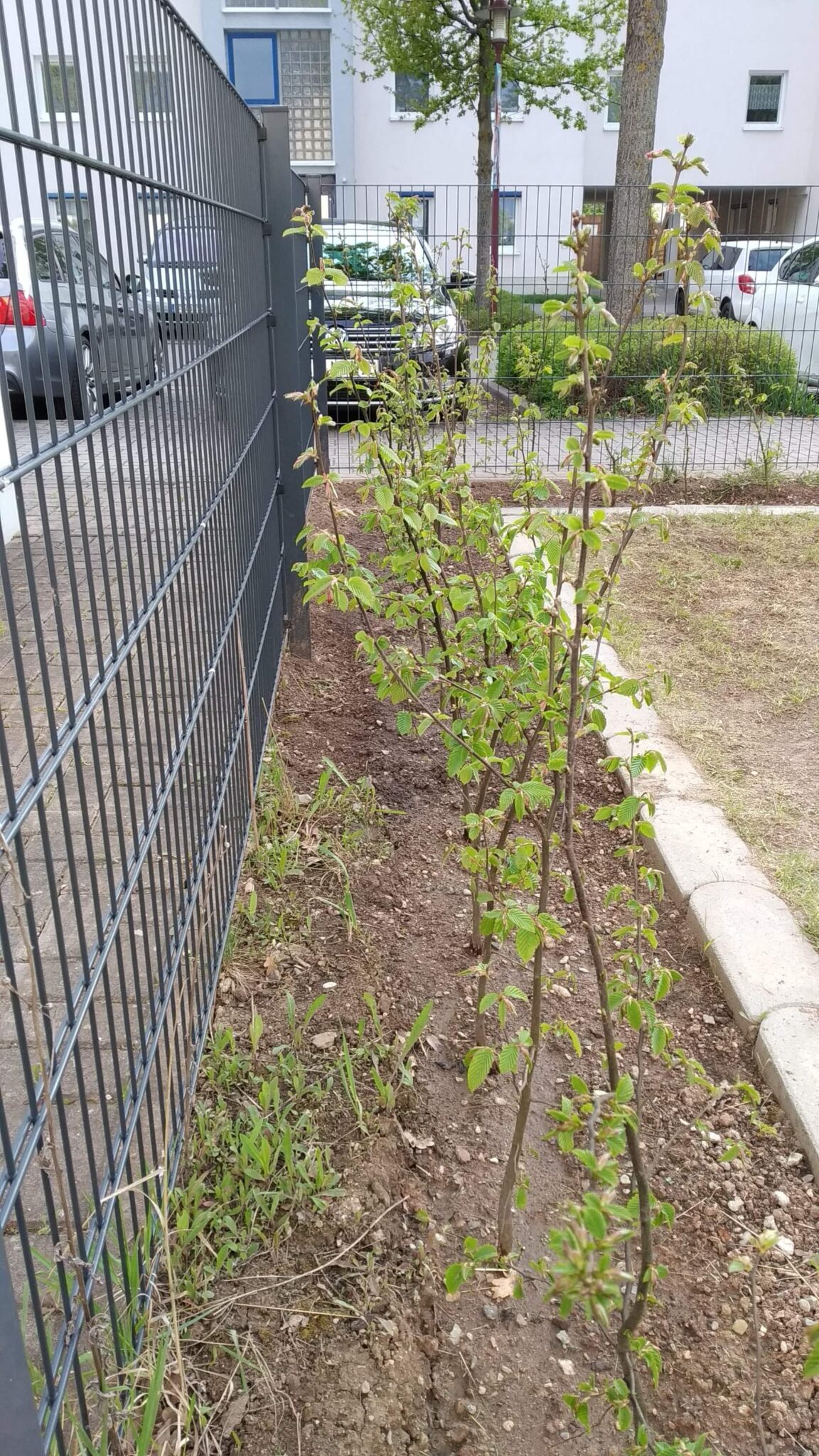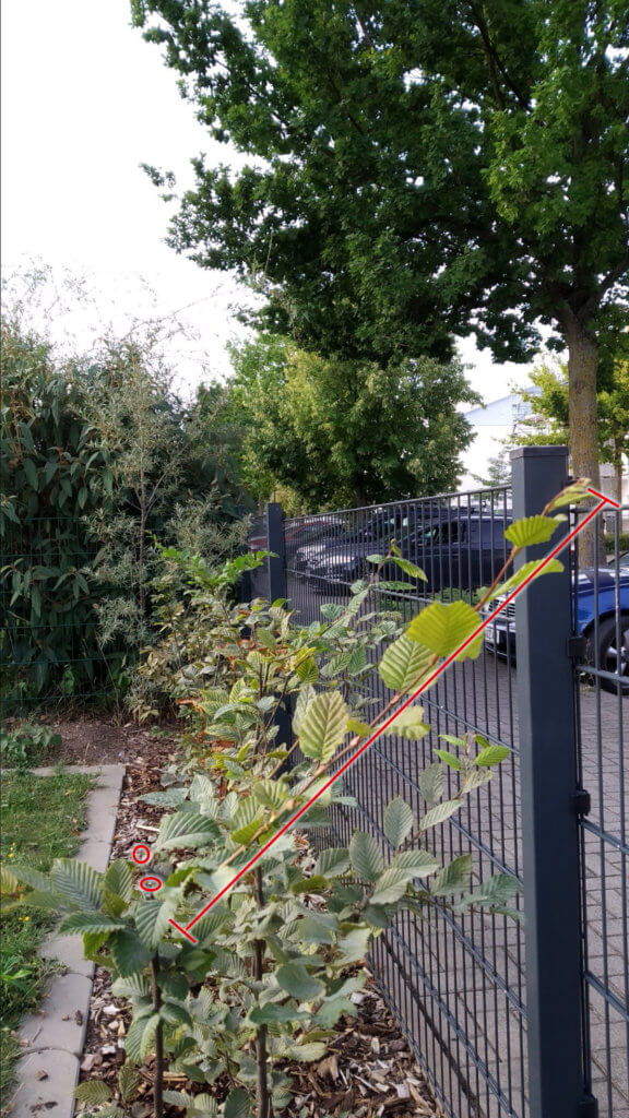 Die Hecke kennt nur eine Richtung – nach oben. Sie wächst und wächst. Der geübte Betrachter erkennt die zwei (!) Schnittstellen, die schon wieder deutlich überwuchert sind. Frei nach dem Motto: „Mir doch egal, dass du mich kurz halten willst.“ Würde die Hecke nur in der Breite genauso schnell wachsen…