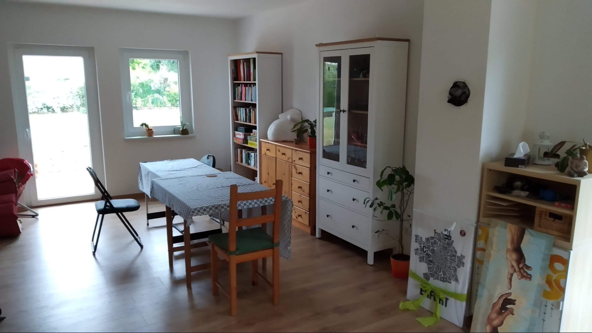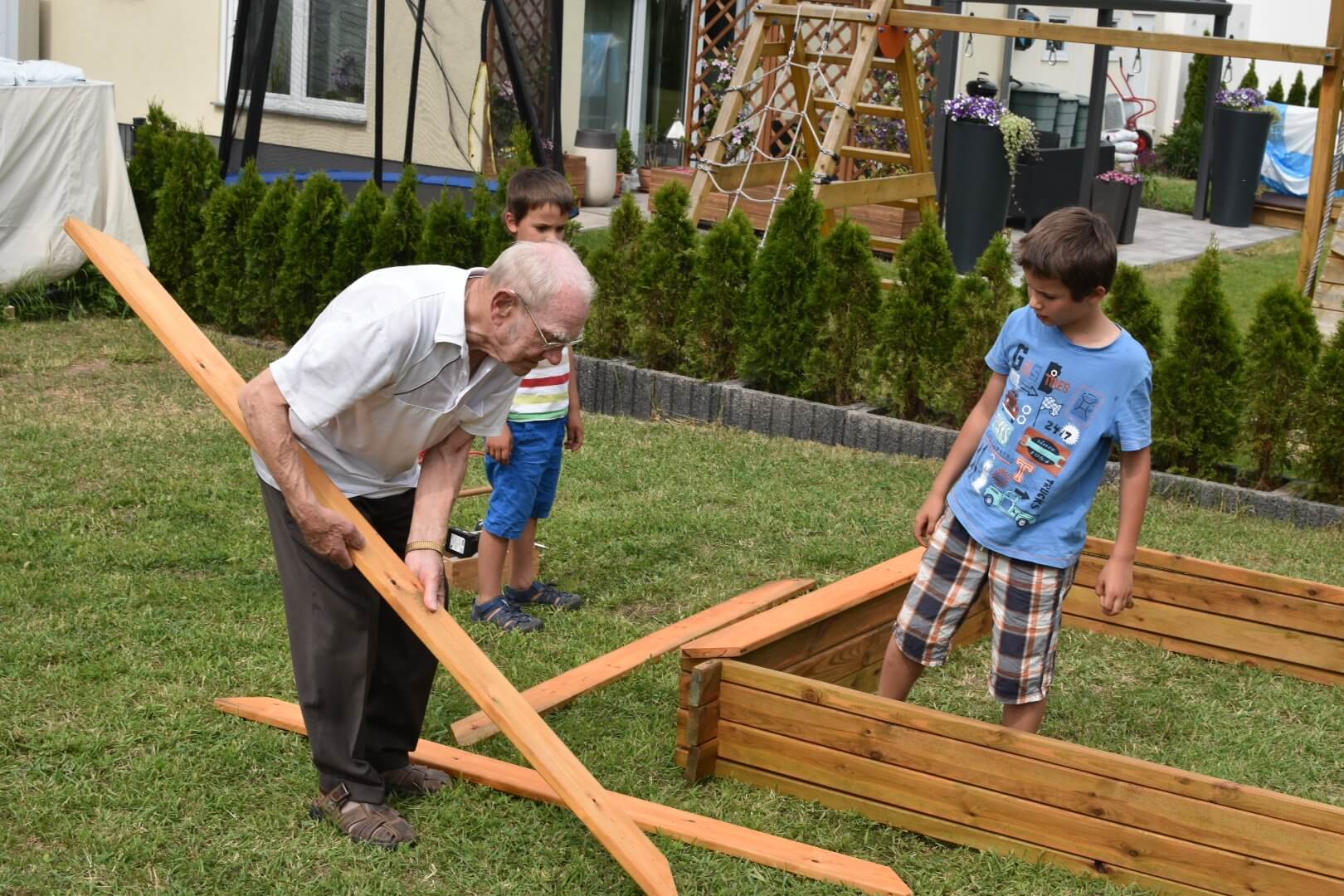 Demnächst entsteht dann der Schuppenanbau – das Holz wartet gerade darauf, gestrichen zu werden.