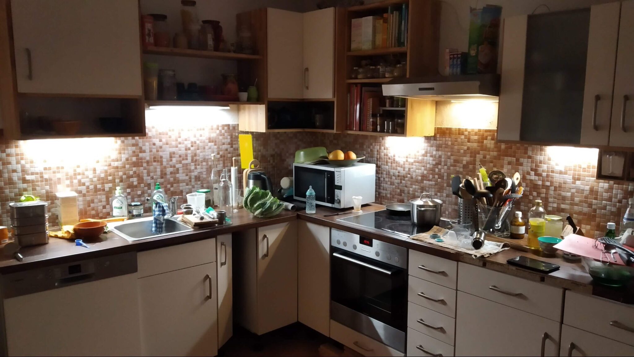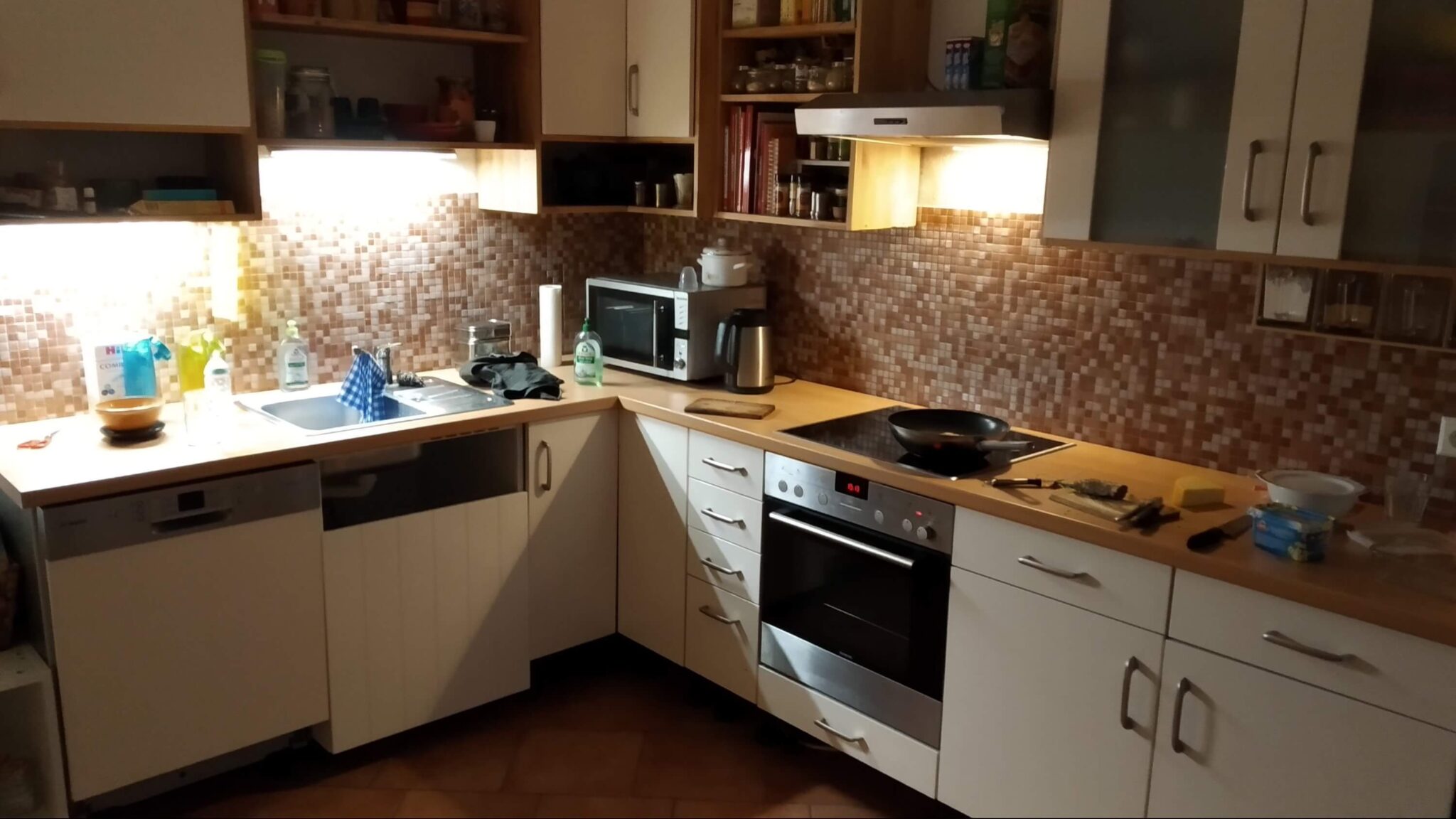 Manches dauert halt ein bisschen. Doch jetzt ist doch die letzte* Baufassung (*bis auf die im Heizraum) verschwunden. Zuletzt galt es noch im Wohnzimmer und im Flur Lampen aufzuhängen.