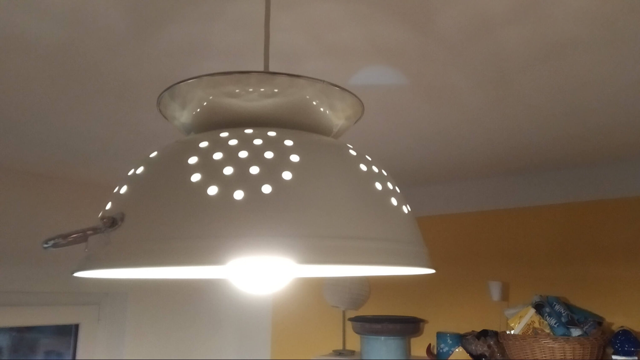 Fehlt nur noch die Lampe über dem Esstisch. Dafür fehlt mir nur noch eine unbedeutende Kleinigkeit: die Leuchtmittel.