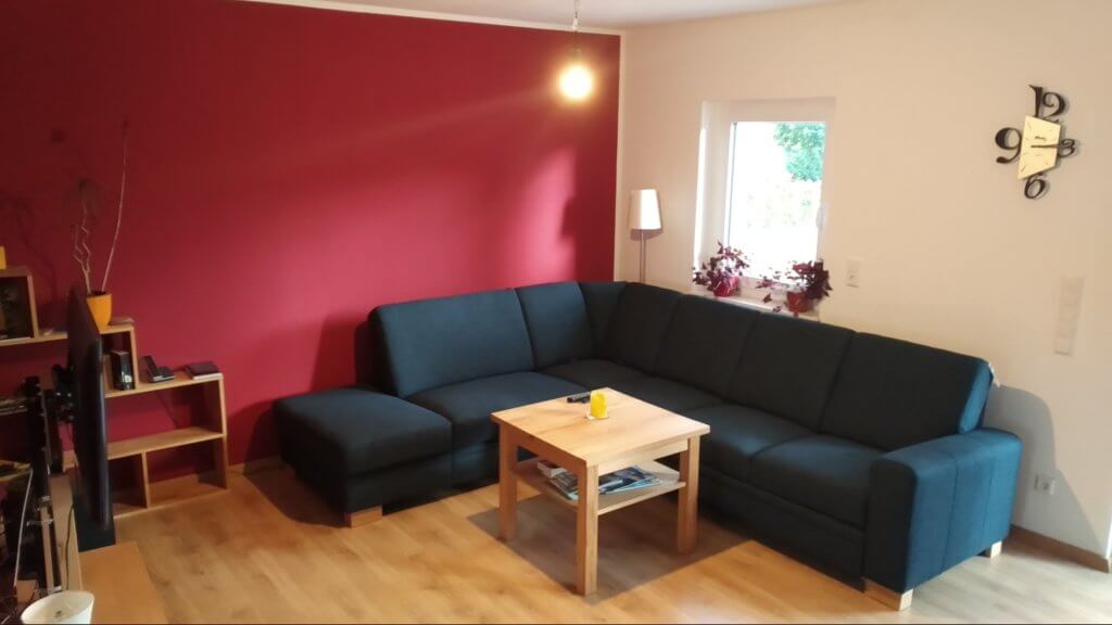 Schon in November bekamen wir unsere neue Couch geliefert – sie passt (wie wir finden) sehr gut in den Raum und hat endlich genug Platz für unsere wachsende Familie.