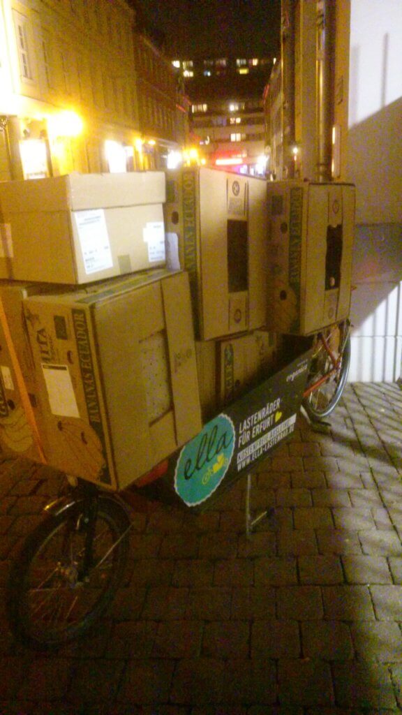 Aber nicht nur das! Auch eine Anzeige „Ich möchte gern Umzugskisten/Bananenkisten geschenkt bekommen“ funktioniert tatsächlich. Einen kleinen Grundstock an Kisten haben wir so schon zusammen bekommen. Weitere (im Raum Erfurt) nehmen wir gern und holen sie natürlich gern (mit Lastenrad) ab.