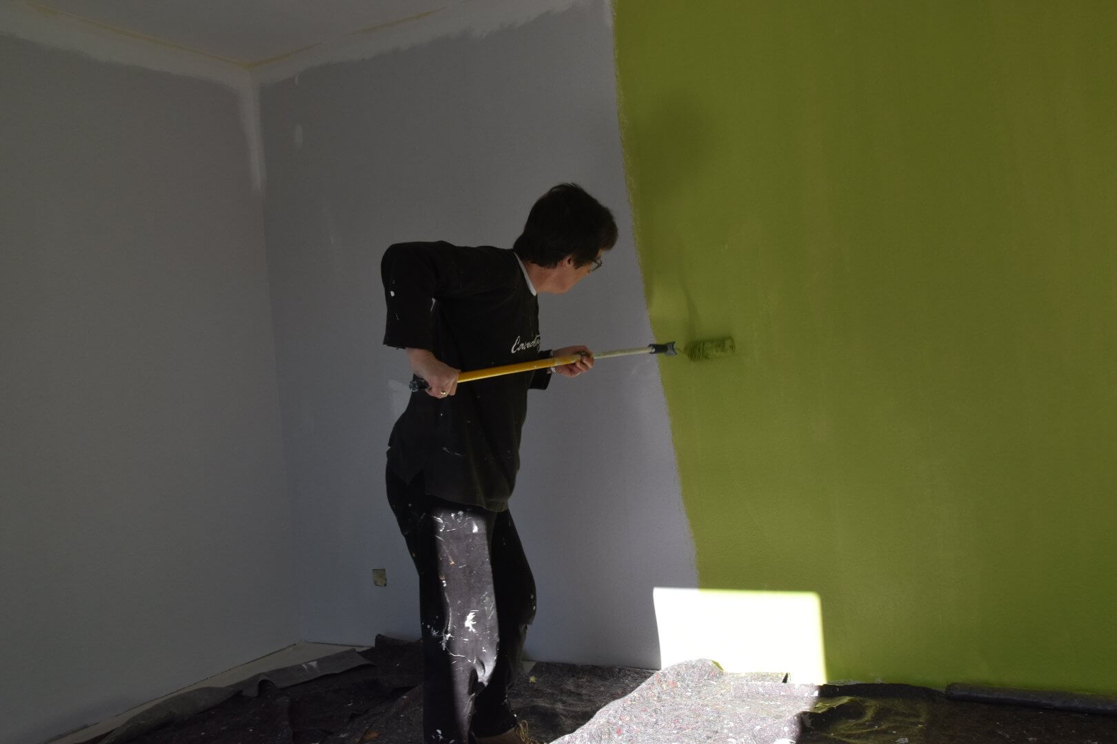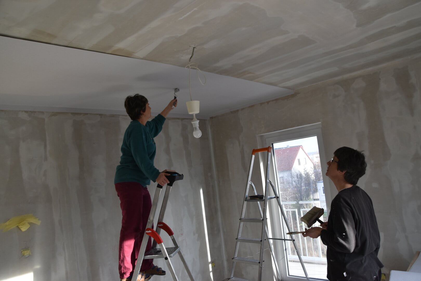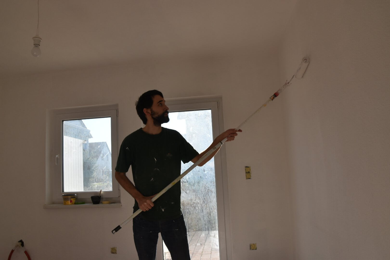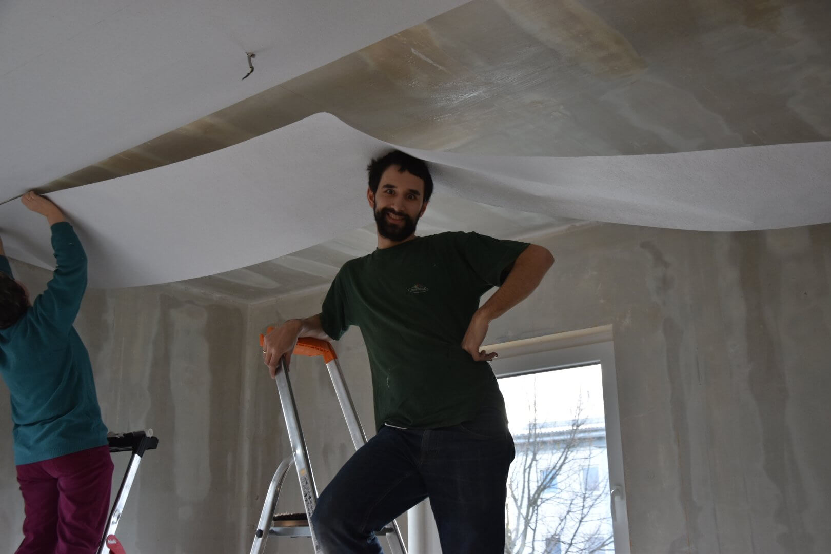 Eine erfolgreiche Woche geht langsam zu Ende. Mit Unterstützung von Eva, Steffi, David sowie Assistenz- und Kamerakind Jonathan haben wir beim Tapezieren und Malern echt was geschafft. Mehrere Räume sind quasi einzugsfertig.
