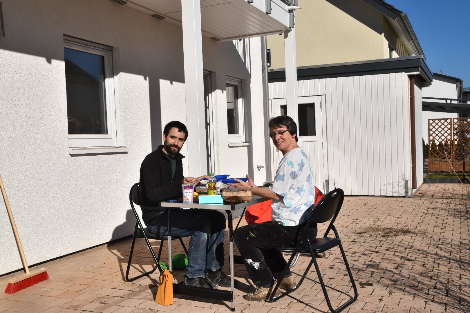 - Erstes Mittag auf der Terrasse (im Februar, im T-Shirt)